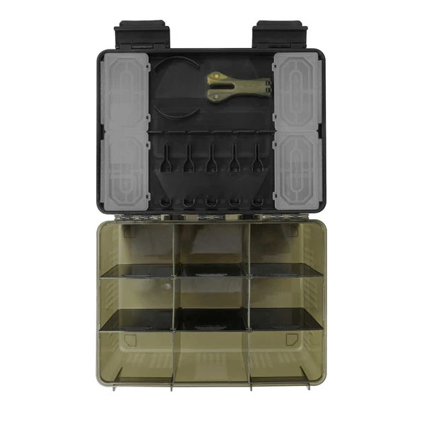 De Korum Tackle Blox – Unloaded is voorzien van verschillende vakken en biedt plaats aan allerlei accessoires zoals lijn, onderlijnen, tools en kleinmateriaal. In de deksel zijn uitsparingen voor het plaatsen van een Korum Scissor en tools. De Tackle Blox – Unloaded is voorzien van verwijderbare tussenschotten en een pakking in de deksel waardoor de box waterdicht is.