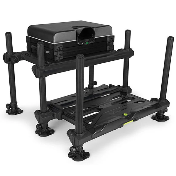 De Matrix XR36 Comp Seatbox Shadow is voorzien van een zeer fraai design en door het zwarte frame heeft deze zitkist een uitermate sportief uiterlijk. Dankzij de 36 mm brede poten staat de XR36 Comp Seatbox Shadow zeer stabiel en door het aluminium frame is hij toch zeer licht. Daarnaast heeft deze kist een comfortabele zitting en veel opbergruimte. De Matrix XR36 Comp Seatbox Shadow is voorzien van zes telescopische poten met grote moddervoeten en een verwijderbare schouderband.