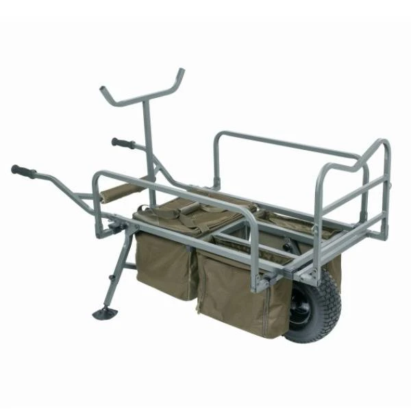 De Trax Evo MK2 van Nash is een zeer uitgebreide barrow die veel mogelijkheden biedt voor optimaal transport. Het sterke stalen frame heeft bevestigingsogen voor elastieken en door het grote wiel rijdt de trolley moeiteloos over iedere ondergrond. De geïntegreerde, waterdichte tassen zorgen voor een slim opbergsysteem en extra balans. De van moddervoeten voorziene poten zijn verstelbaar en te fixeren door een lock pin, waardoor de kar zeer stabiel staat. De handgrepen zijn ergonomisch gevormd met een zachte grip voor optimaal comfort. De verstelbare rear rod foedraal support is ideaal, omdat het foedraal niet los op de spullen ligt, maar in de V waardoor deze onafhankelijk wordt ondersteund en dus niet van de kar valt tijdens het rijden. De Trax Evo MK2 heeft een extra breed, groot wiel voor optimale balans en goed rijcomfort.