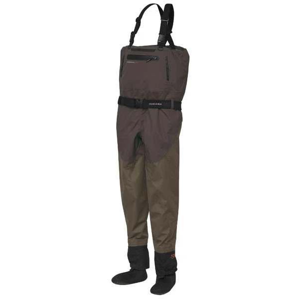 De Scierra Helmsdale Chest Stocking Foot Wader is een comfortabel en duurzaam waadpak. Dit ademende pak bestaat uit drie lagen en biedt zeer veel bewegingsvrijheid. Daarnaast is de Helmsdale Chest Stocking Foot Wader voorzien van 4,5 mm neopreen sokken, een waterafstotend voorvak met rits en twee D-ringen voor het bevestigen van verschillende tools.